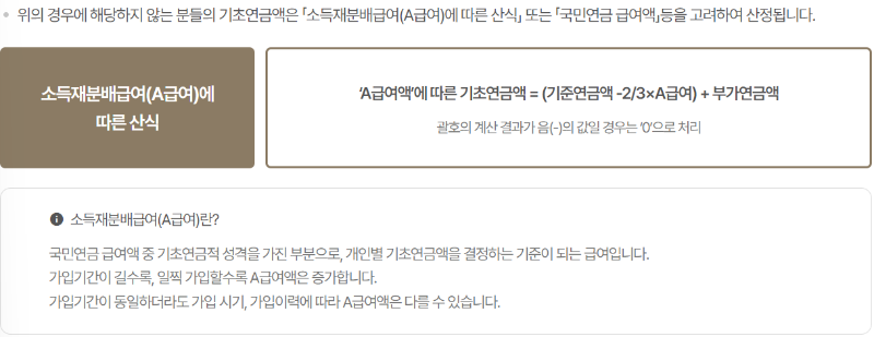 ● 위의 경우에 해당하지 않는 경우에는 소득재분배급여와 국민연금 급여를 고려하여 산정되는데요, 아래 산식을 통해 계산한 금액이 기준연금액을 초과할 경우 최고액인 기준연금액으로 기초연금액이 산정됩니다. 아래 그림을 참고하시기 바랍니다. (출처: 보건복지부)